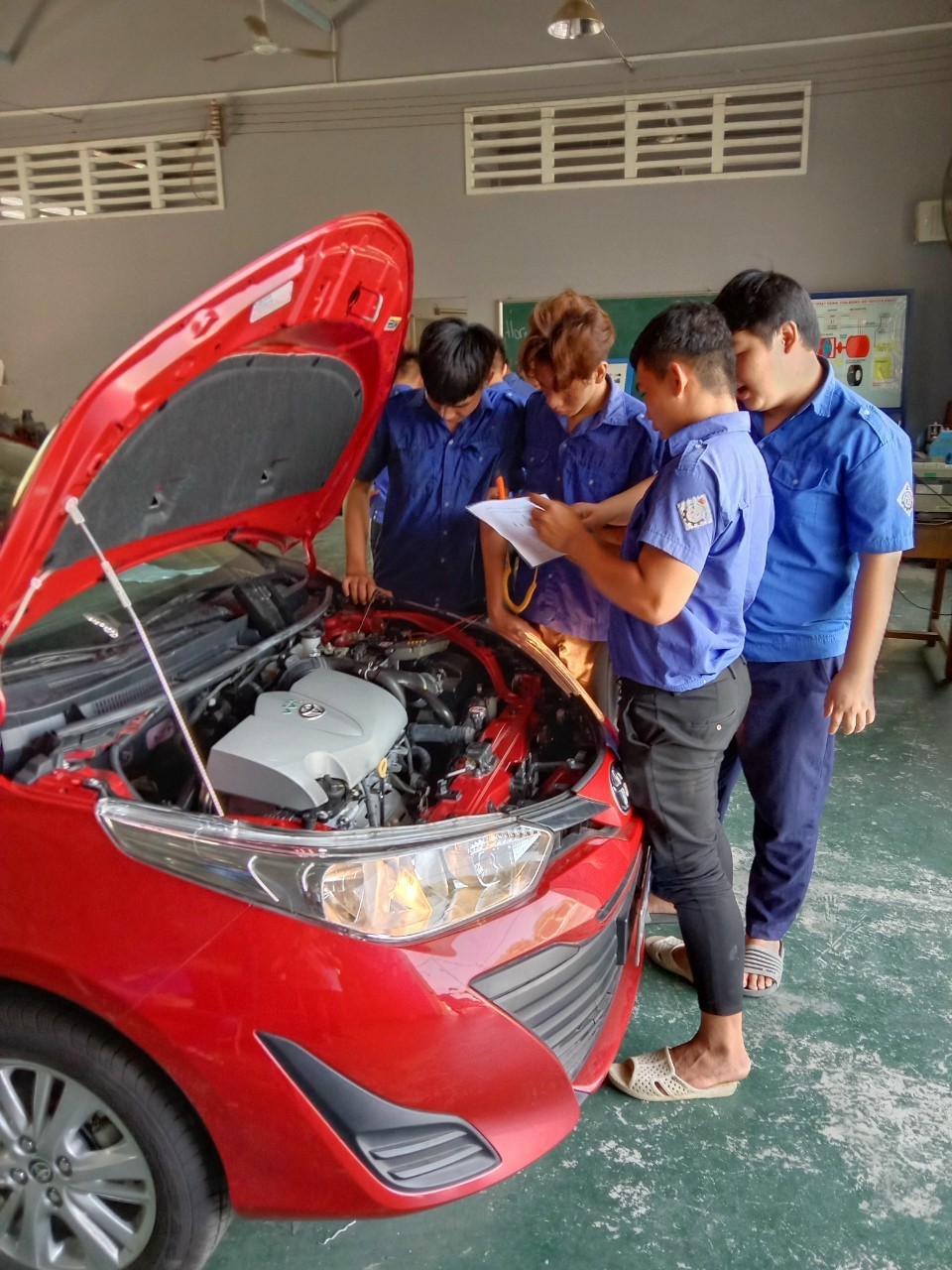Hình 2. Sinh viên Khoa Cơ khí – Xây dựng thực hành sửa chữa Ô tô