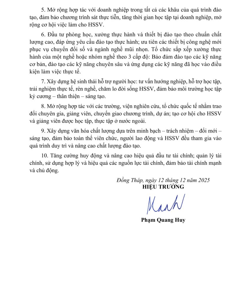 - Xác lập ví trí nhà trường thuộc tốp đầu trong hệ thống các cơ sở giáo dục nghề nghiệp vùng Đồng bằng Sông Cửu Long.