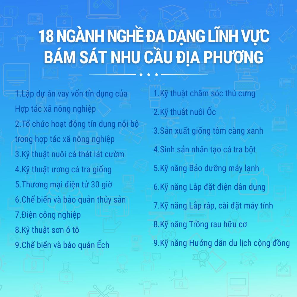 18 ngành nghề đa dạng lĩnh vực, bám sát nhu cầu địa phương: