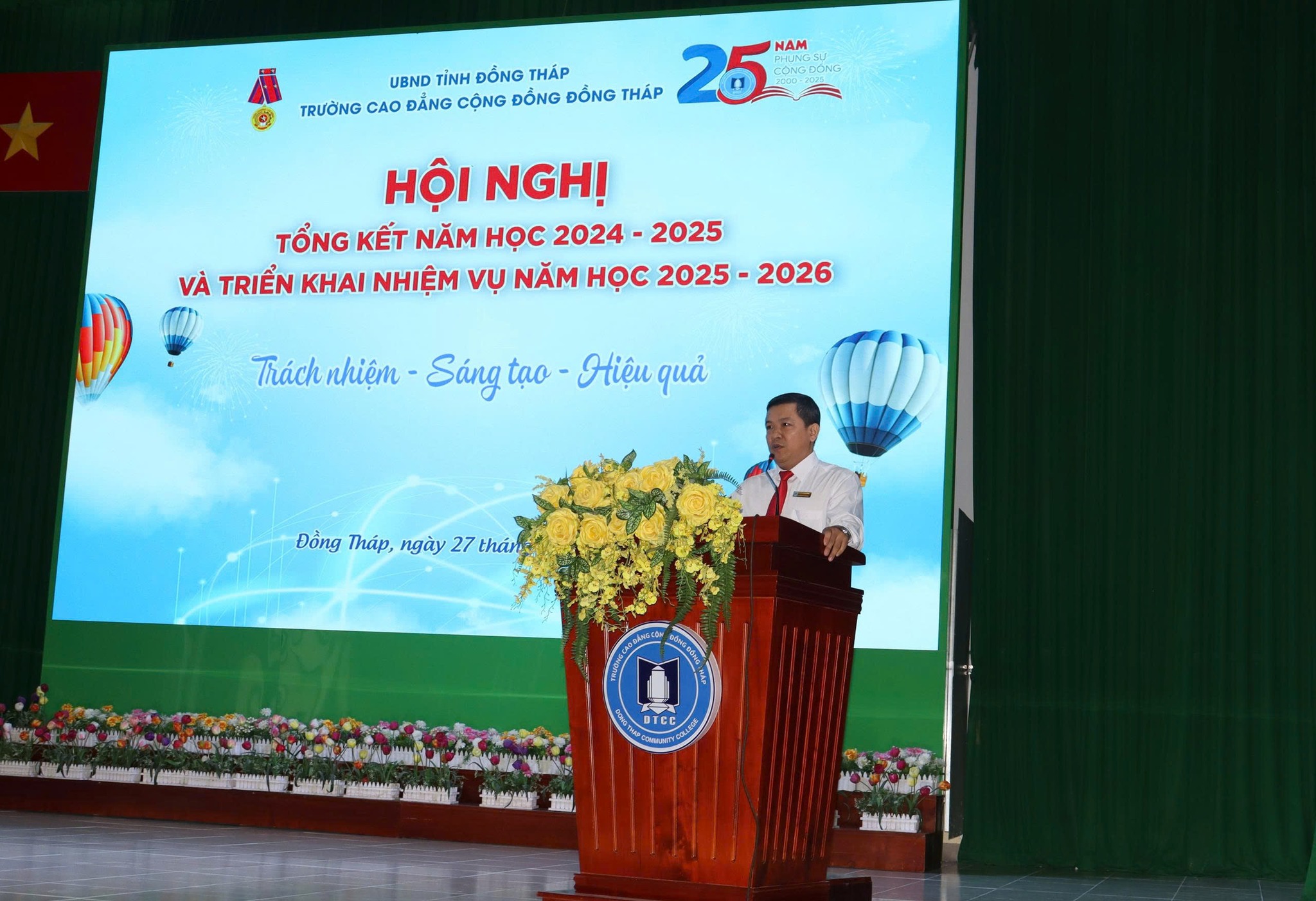 Sáng ngày 27/8/2025, tại Hội trường A – Trường Cao đẳng Cộng đồng Đồng Tháp đã diễn ra Hội nghị tổng kết năm học 2024–2025 và triển khai nhiệm vụ năm học 2025–2026.