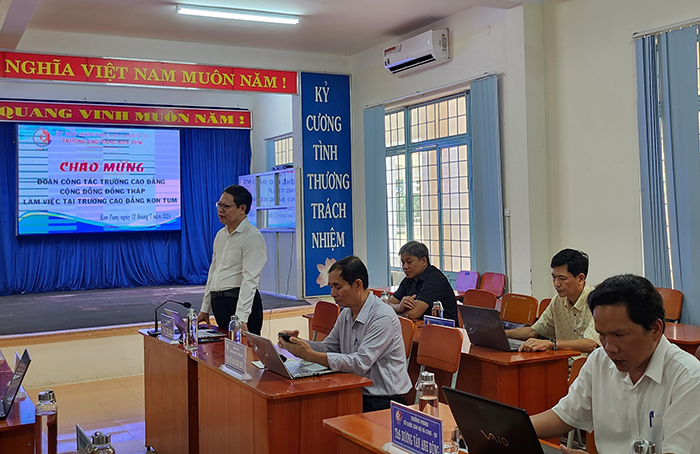 Cuối buổi làm việc, ThS. Lâm Văn Vũ – Phó Hiệu trưởng Trường Cao đẳng Cộng đồng Đồng Tháp thay mặt cho Đoàn công tác cảm ơn sự chuẩn bị và tiếp đón chu đáo, nhiệt tình và chân thành của lãnh đạo Trường Cao đẳng Gia Lai và Trường Cao đẳng Kon Tum.