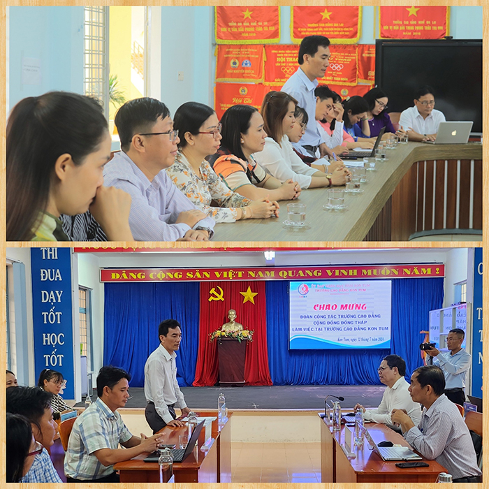 Sáng ngày 12/7/2024, TS. BS. Lê Trí Khải – Bí thư Đảng ủy, Hiệu trưởng Trường Cao đẳng Kon Tum cùng đại diện các đơn vị trong trường đã có buổi đón tiếp và làm việc với đoàn công tác Trường Cao đẳng Cộng đồng Đồng Tháp.