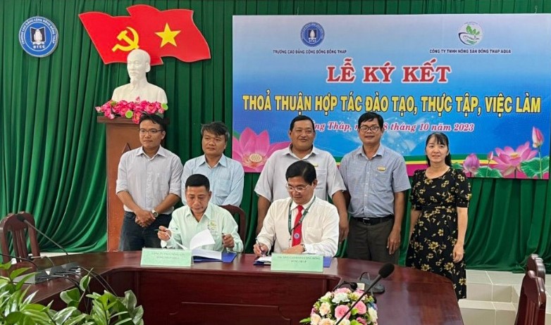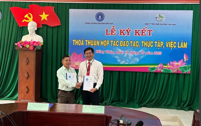 Sáng ngày 18/10/2023, Trường Cao đẳng Cộng đồng Đồng Tháp cùng với Cty TNHH Đồng Tháp AQUA, tiến hành ký kết thỏa thuận hợp tác các lĩnh vực đào tạo, tuyển dụng, thực tập các nghiên cứu ứng dụng thực tiễn trong sản xuất kinh doanh hiện nay.