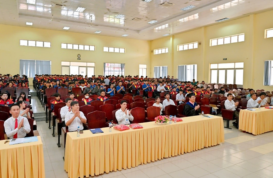 Thay mặt Đảng ủy, Lãnh đạo nhà trường TS. Phạm Quang Huy phát biểu chào mừng các tân khoa về dự Lễ bế giảng và trao bằng tốt nghiệp trung cấp năm 2024. Đồng thời tuyên dương, khen ngợi đến các tân khoa vì các em đã xuất sắc hoàn thành chương trình đào tạo, được đánh giá, công nhận và được trao bằng tốt nghiệp. Đây là điều đáng tự hào không chỉ với các em mà còn với toàn thể Nhà trường bởi nó là minh chứng cho việc không ngừng vươn lên vượt khó của các HSSV, viên chức và nhà giáo toàn trường.