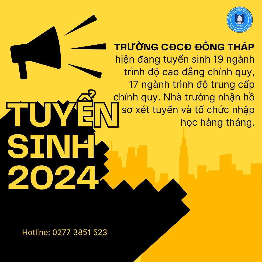 Trường Cao đẳng Cộng đồng Đồng Tháp hiện đang tuyển sinh 19 ngành trình độ cao đẳng chính quy, 17 ngành trình độ trung cấp chính quy. Nhà trường nhận hồ sơ xét tuyển và tổ chức nhập học hàng tháng.