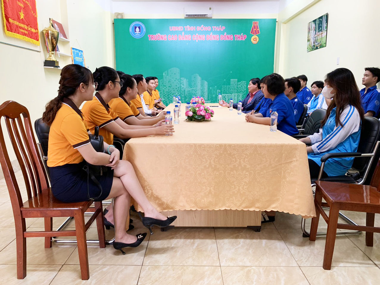 Tiếp đón lãnh đạo Ngân hàng Liên Việt, Tiến sĩ Phạm Quang Huy – Hiệu trưởng nhà trường đã có những chia sẻ về hoạt động chung của trường cũng như 1 số hoạt động nổi bật của tổ chức Đoàn – Hội trường Cao đẳng Cộng đồng Đồng Tháp.