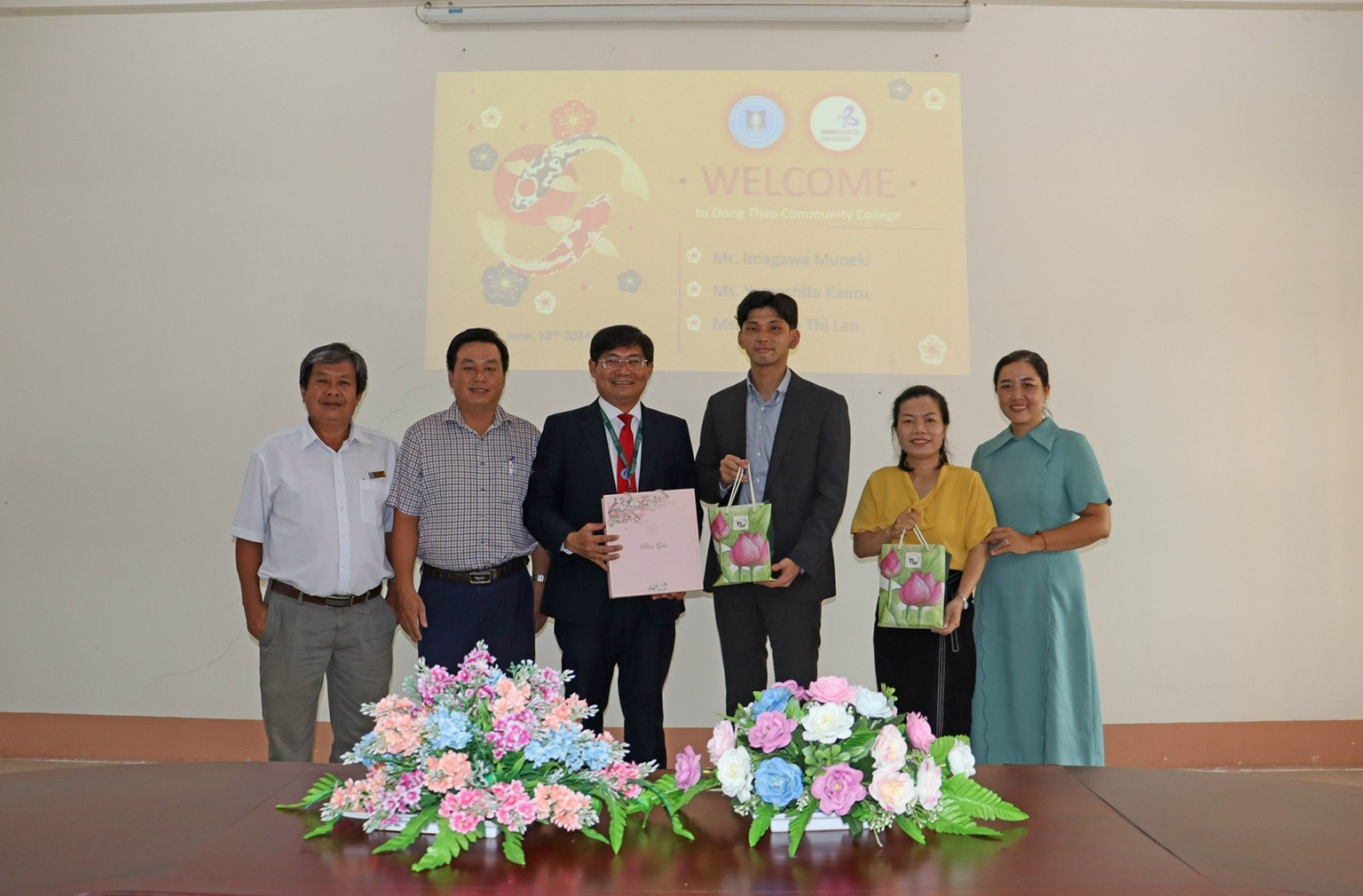 Vào chiều ngày 27/6/2024, Lãnh đạo Trường Cao đẳng Cộng đồng Đồng Tháp, cùng đại diện các phòng, khoa, trung tâm của trường đã tiếp và làm việc với Viện Nghiên cứu Giáo dục Y tế và Phúc lợi Nhật Bản Châu Á (JAMWEI). Đoàn công tác do ông Yoshino Masayoshi – Chủ tịch Viện JAMWEI, dẫn đầu. Tại buổi làm việc, hai bên đã thảo luận và thống nhất các nội dung như: xây dựng phương án đào tạo ngôn ngữ và cấp chứng chỉ Tiếng Nhật, phương án đào tạo nguồn nhân lực Tự động hoá với Tập đoàn Bynas, và hỗ trợ mời chuyên gia Nhật Bản giảng dạy các lớp thuộc Đề án Nông nghiệp chất lượng cao.